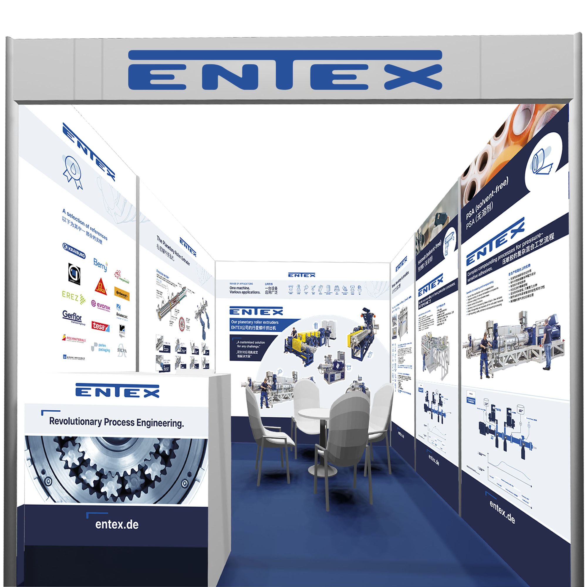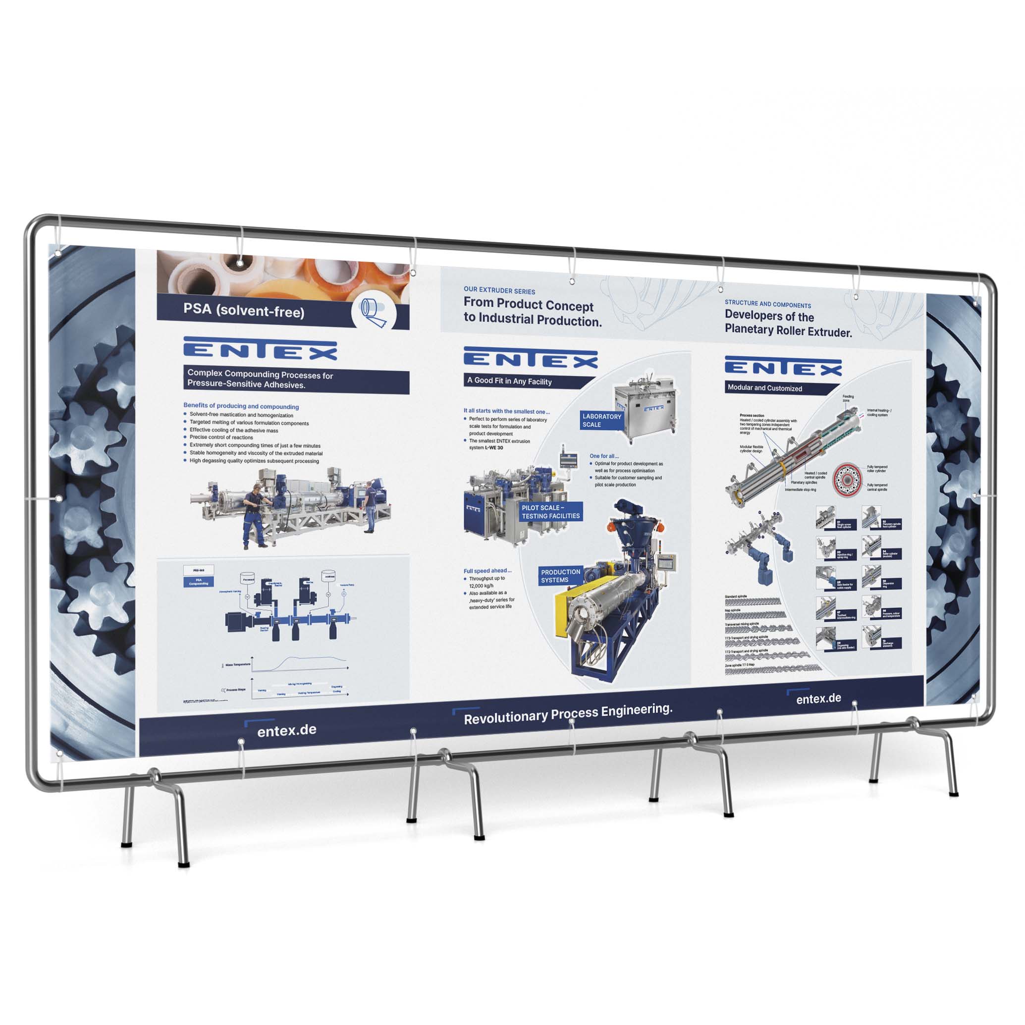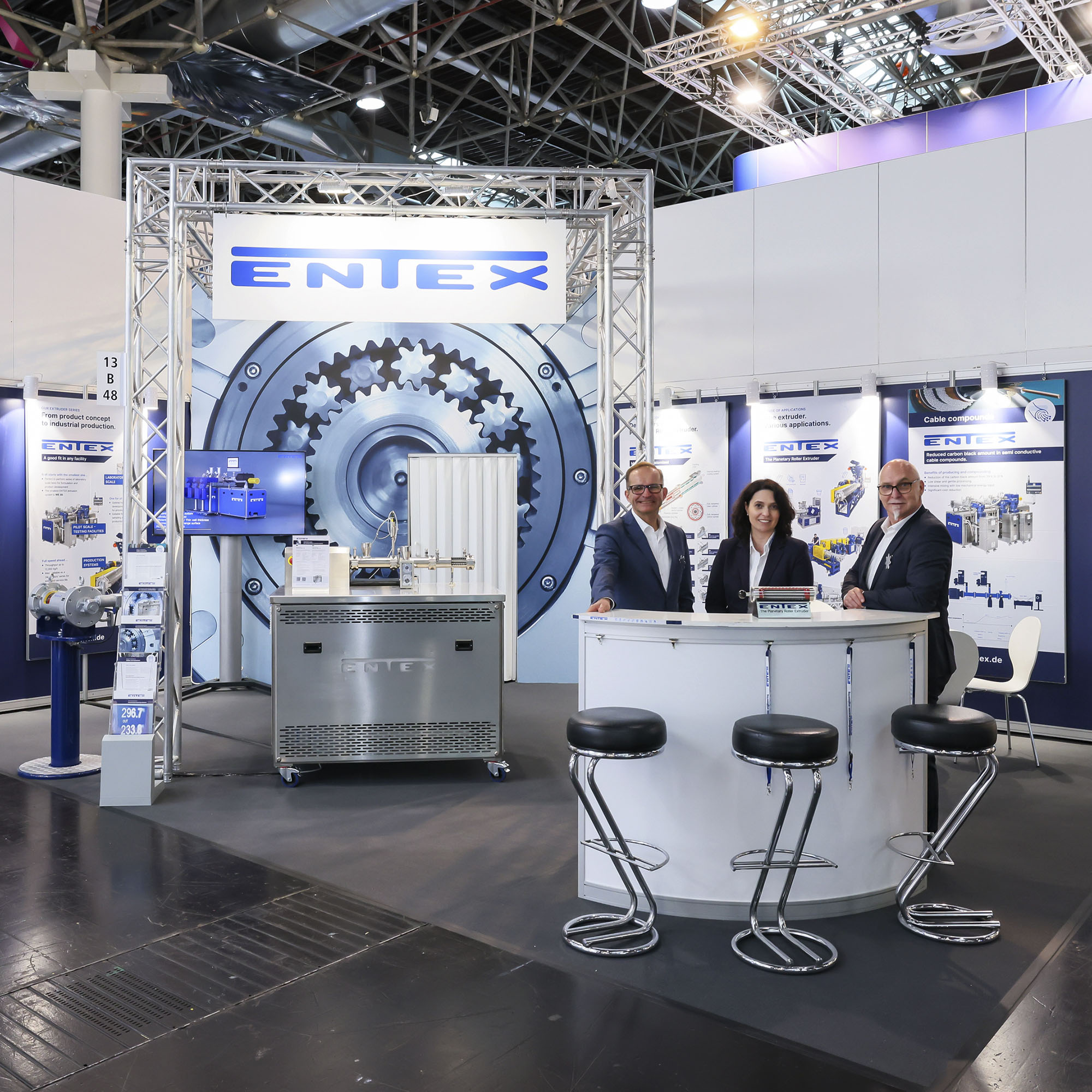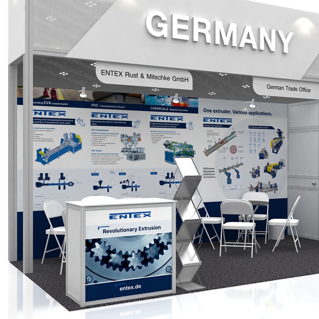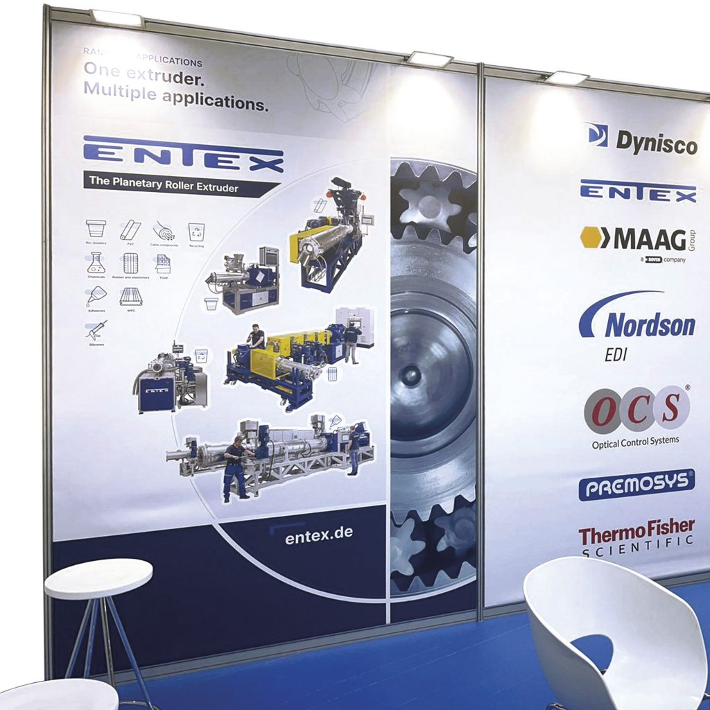 Alles fing 2022 mit der Anfrage zu „einer“ Messestand-Rückwand an. Dafür muss man (frau) aber erst einmal verstehen was ein Planetwalzenextruder überhaupt macht und was er alles kann – und das ist unglaublich vielfältig.