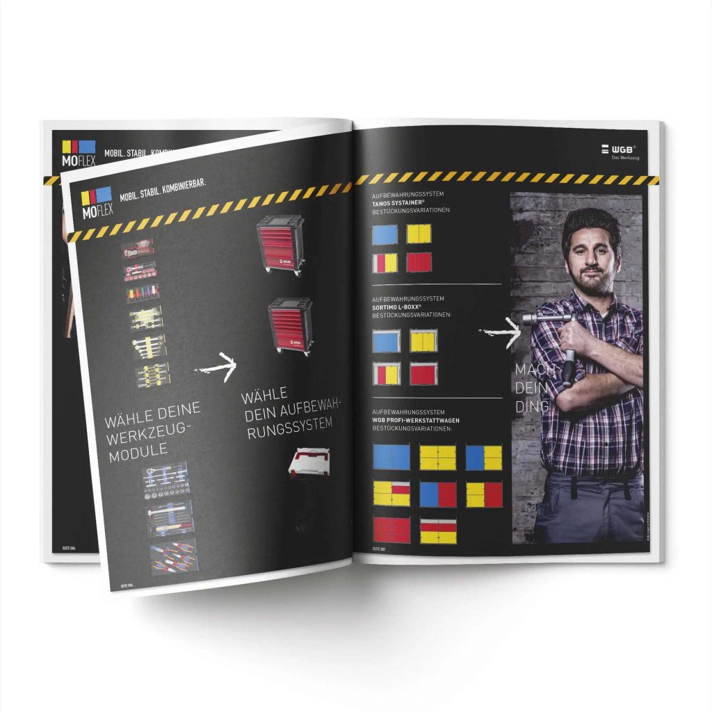 Für die Firma WGB und für ihre Tochtergesellschaften gibt es immer was zu tun. Ob Verpackungen, Broschüren oder einfache Visitenkarten – alles wird individuell auf das Firmengeschehen abgestimmt.